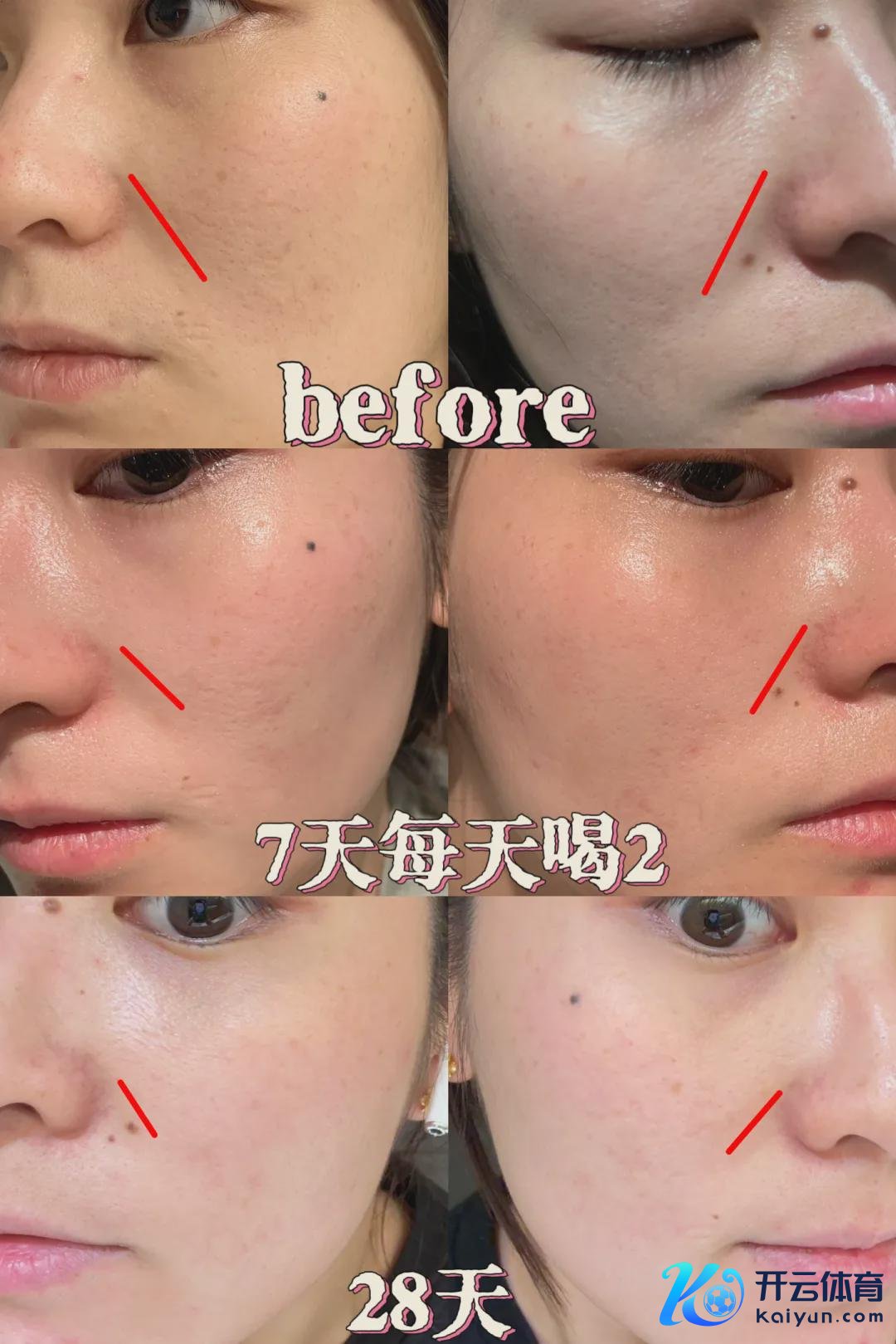 在品牌检测的东说念主群中30%是关于30-40岁女性,70%都是关于40-50岁女性的,流程中呢, 每天只喝1支冰绷带,经过56天(2个皮肤代谢周期),全方针测试