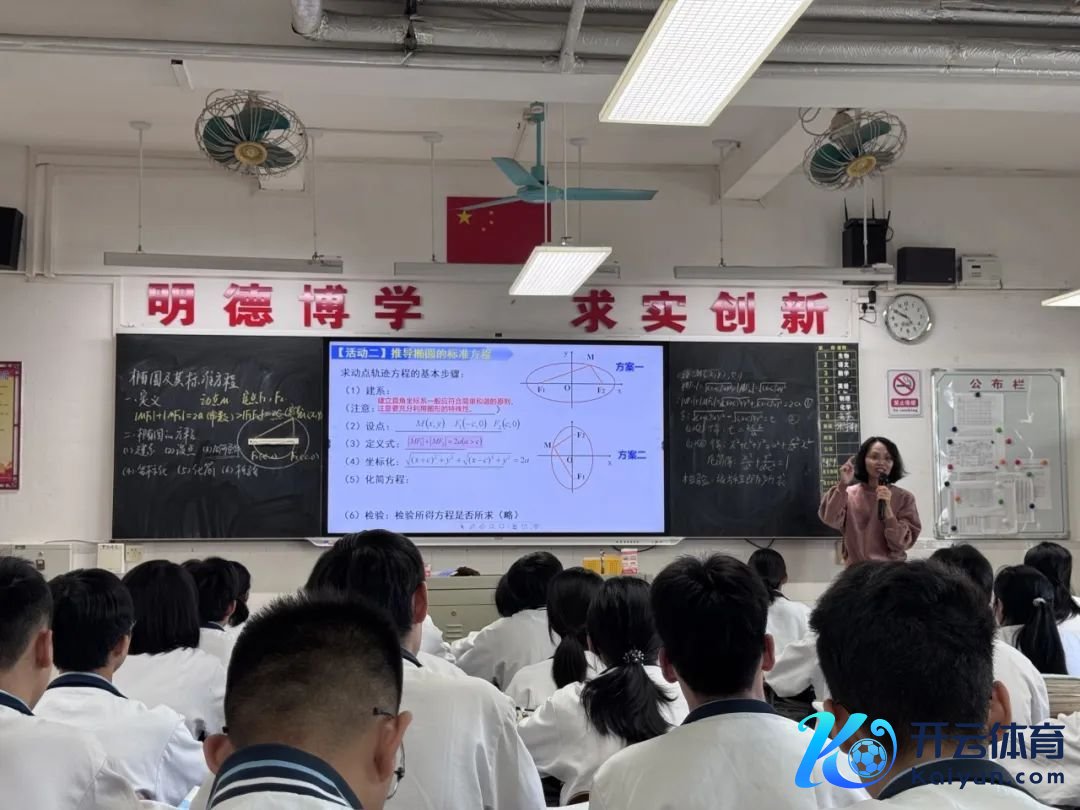 我校杨伟燕至意通过让两组学生在黑板演示椭圆的生成经过,类比圆的界说及圆的方程推导念念路,生成椭圆界说,探索椭圆的方程推导。茂名十六中邹泳至意通过类比圆的界说由学生归纳追忆椭圆界说,进而推导出椭圆的规范方程。