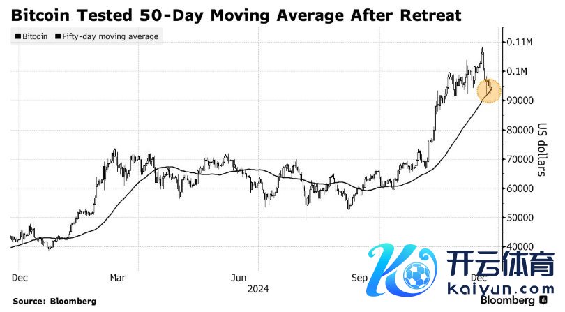 在创记录的一年行将画上句号之际,比特币却显透露疲态。周二亚洲早盘,比特币的往复价钱约为9.45万好意思元,比12月17日创下的历史峰值低约1.4万好意思元。该加密货币已跌至50日出动均线,一些东谈主将其视为需要严慎的事理。