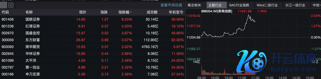 周边上昼收盘,券商板块出现一波拉升,国联证券盘中触及涨停,红塔证券、国盛金控等盘中涨幅居前。