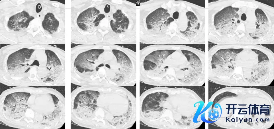 韩大爷插管后被立即送到CT室,进行了头颅、胸部CT和肺血管CTA查验。截止一出来,尽然两肺全白了!